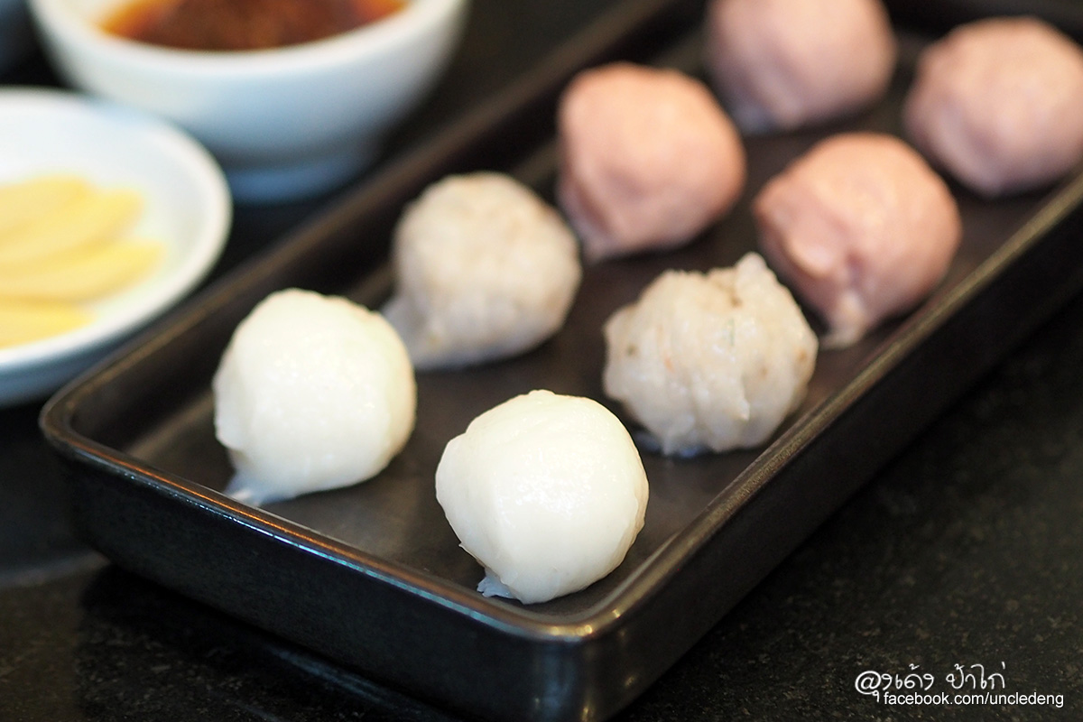 ลูกชิ้นปลาหมึก เชฟเลือกใช้ปลาหมึกกระดอง นำมานวดจนเหนียวไม่ผสมแป้ง ผสมเองไม่มีกลิ่นคาว