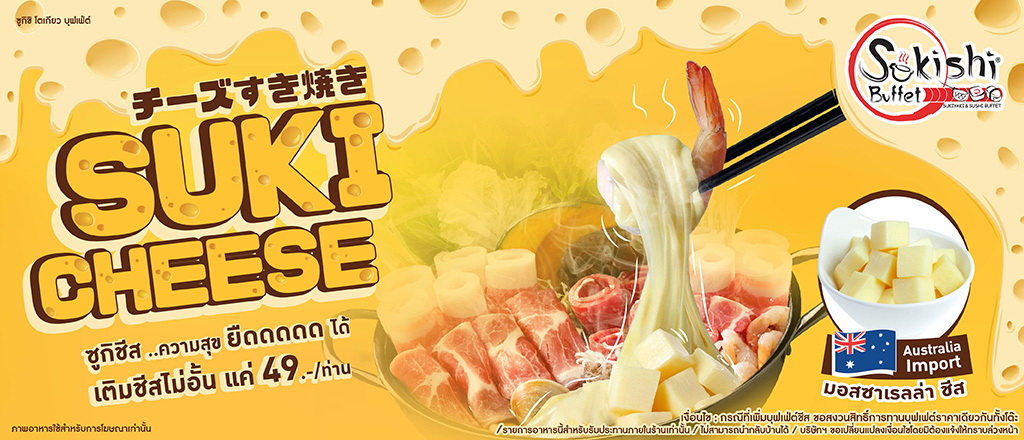 ช่วงนี้ทางร้านมีเมนูพิเศษ ซูกิชีสสสสสส เป็นมอสซาเรลล่า ชีส จากออสเตรเลีย
