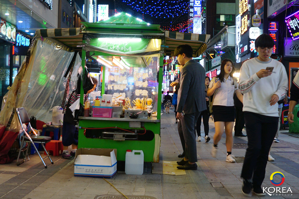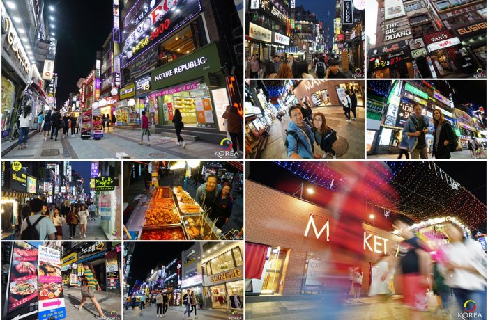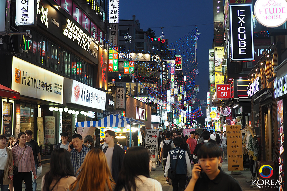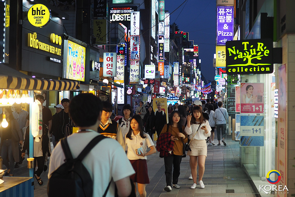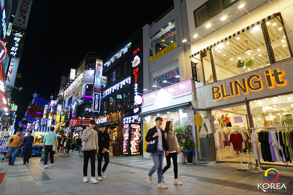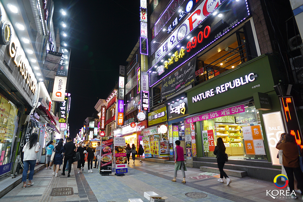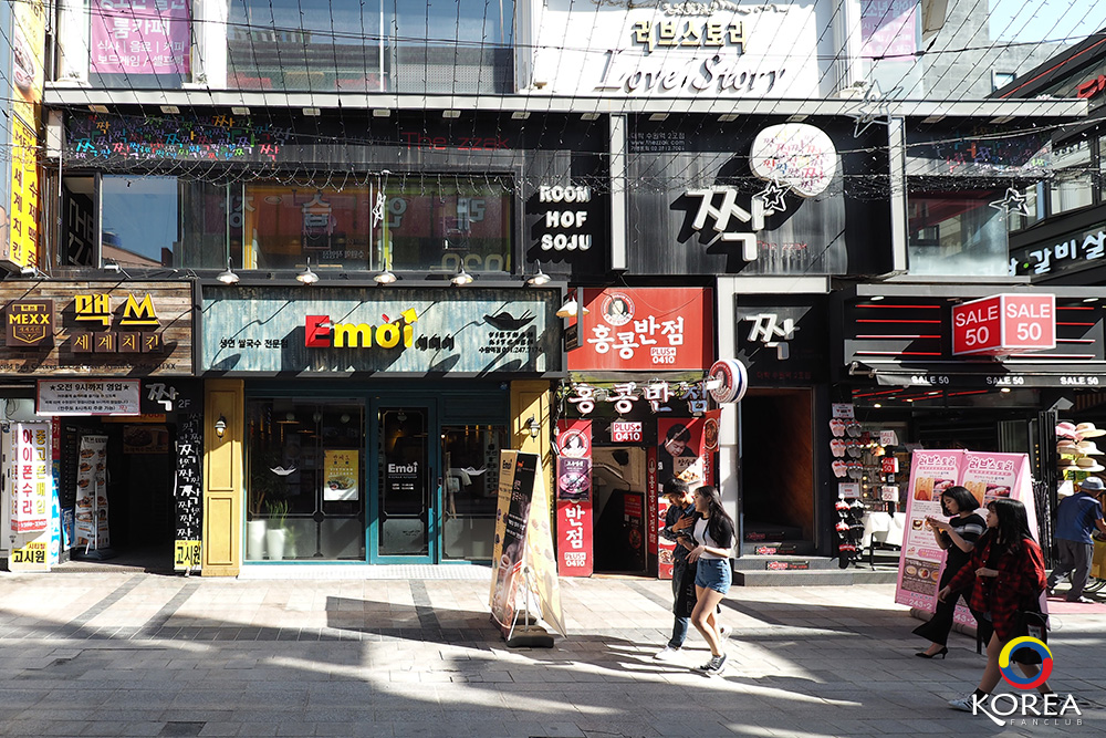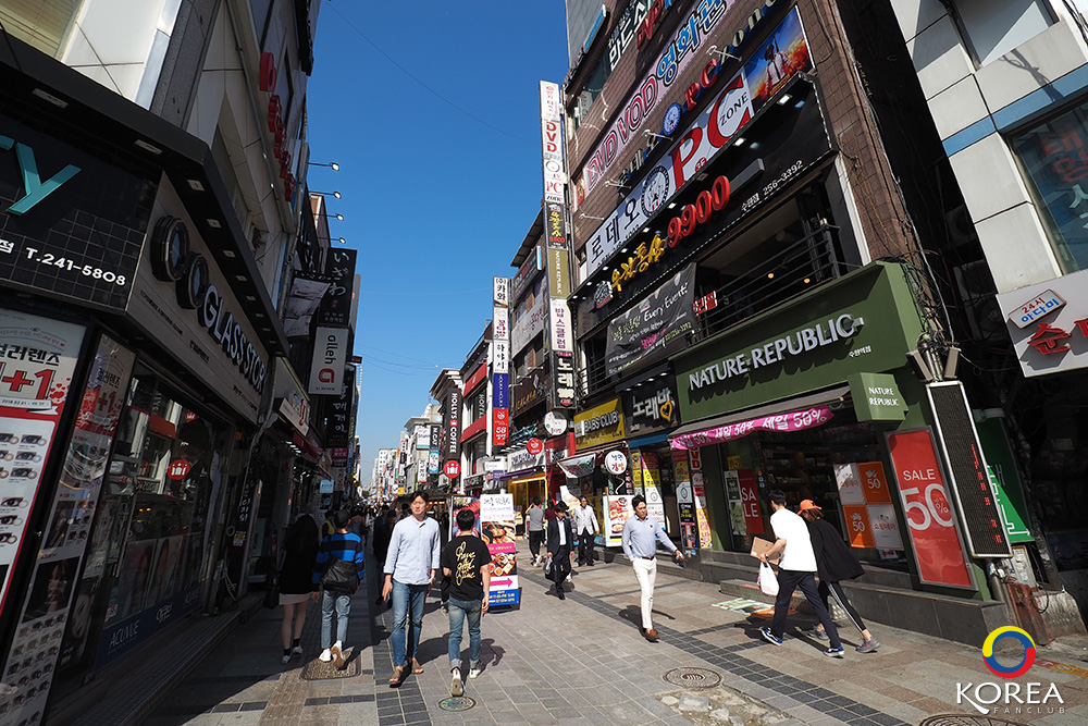 ในย่านนี้จะเหมือนกับย่าน เมียงดง ในโซล เป็นย่านรวมร้านเครื่องสำอาง ร้านแฟชั่น และร้านอาหารชื่อดัง ช่วงเย็นๆ จะคึกคักมาก