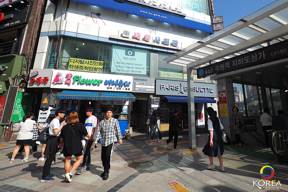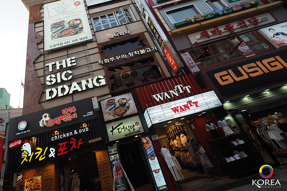 ย่านนี้เดินทางมาง่ายมาก จากสถานี Suwon ทางออก 11 ออกมาก็ถึงเลย