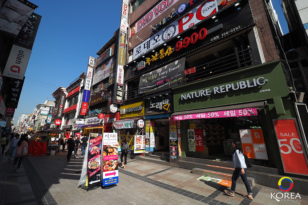 Suwon Station Shopping Street สถานที่ช้อปปิ้งสำคัญของวัยรุ่นในเมืองนี้ ตั้งอยู่ติดกับสถานี Suwon ร้านค้าในย่านนี้จะเปิดร้านตั้งแต่ 10:00 เรื่อยไปจนถึง 21:00