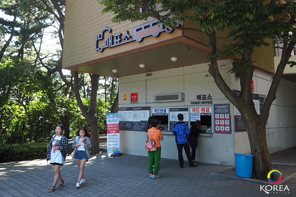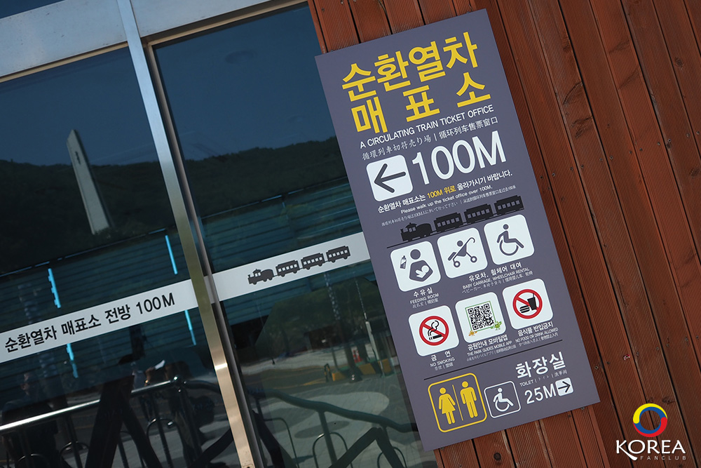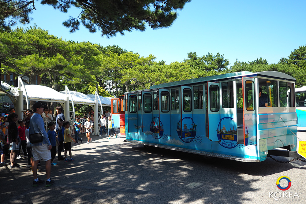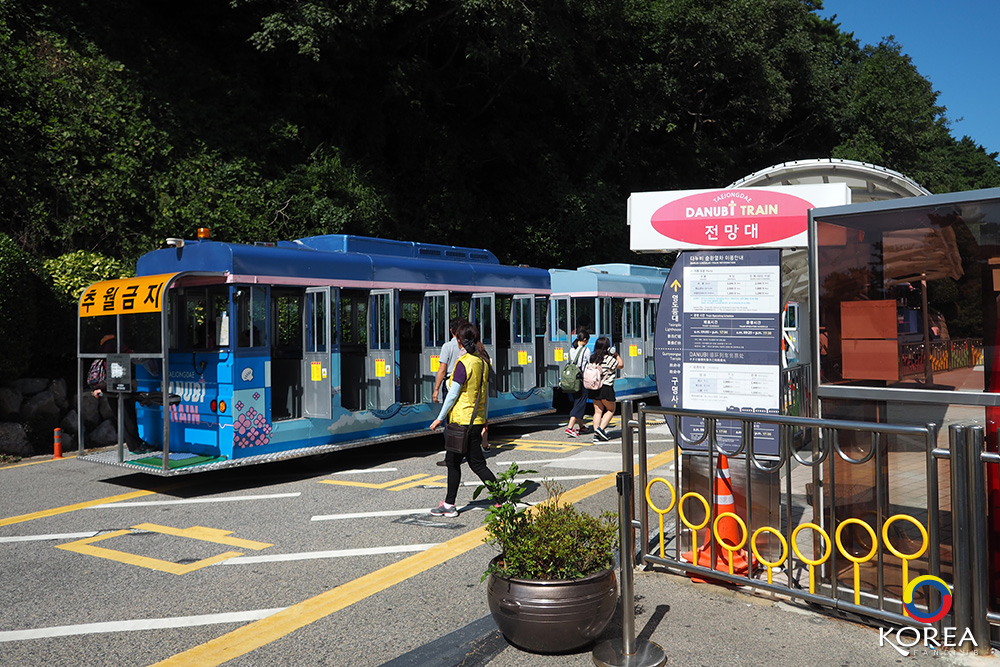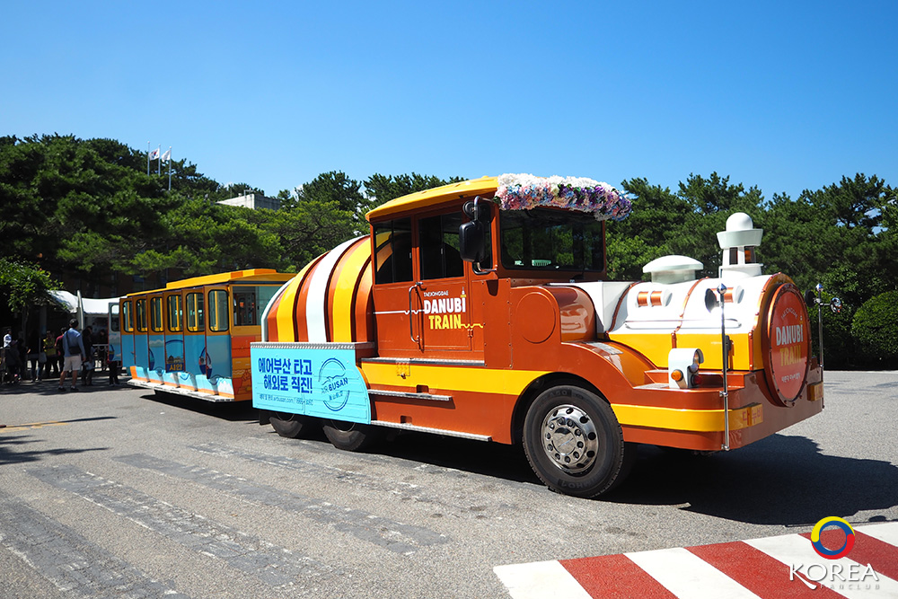 จาก Tourist Information Center เราเดินต่อไปอีกประมาณ 100 เมตร ก็จะถึง A Circulating Train Ticket Office หรือจุดซื้อบัตรบริการรถนำเที่ยว “Danubi Train” รับส่งไปยังสถานที่ท่องเที่ยวในจุดต่างๆ ภายในเขต อุทยานแทจงแด (Taejongdae)