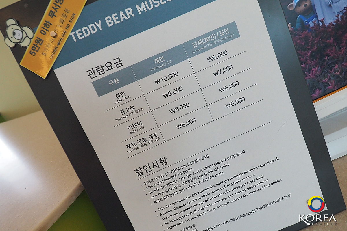 พิพิธภัณฑ์ตุ๊กตาหมี แห่ง เกาะเชจู เราจะได้พบกับตุ๊กตาหมี หลายร้อยตัว โดดเด่นที่สุดคือ ตุ๊กตาหมี ที่เป็นของสะสม มีอายุมากกว่า 100 ปี ที่เก็บรักษาเป็นอย่างดี ถึงแม้ชุดของตุ๊กตาที่สวมใส่จะเริ่มย่อยสลายไปตามกาลเวลา บริเวณหน้าทางเข้า เราจะพบกับตุ๊กตาหมียักษ์ หลายแบบ หลากสไตล์ ยืนต้อนรับผู้เข้าชม และพร้อมให้เราถ่ายรูปคู่