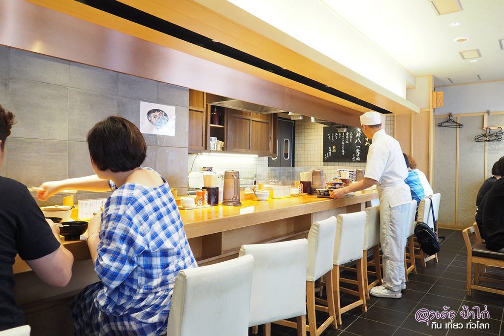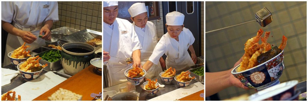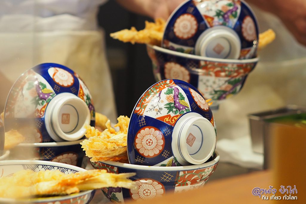 ลุงเด้งป้าไก่ เลือกนั่งหน้า เคาน์เตอร์ ก็จะเห็น ขั้นตอน วิธีการทำเทมปุระชัดๆ เลย ตั้งแต่ ชุบแป้ง ลงทอด ตักขึ้น ตักข้าว ราดซอส และ วิธีการวาง TOPPING