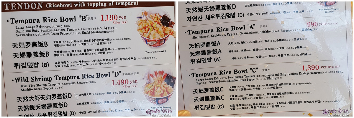หมายเหตุ ... ร้านนี้มีทางเข้า 2 ด้าน ในภาพคือ ฝั่งที่ขาย Tendon (เทมปุระ เสิร์ฟแบบวางมาในชามข้าว) อีกด้านจะขาย "เทมปุระ" เสิร์ฟมาเป็น set แยกกัน คือ ข้าว + เทมปุระ + ซุป ราคาสูงกว่านิดหน่อย