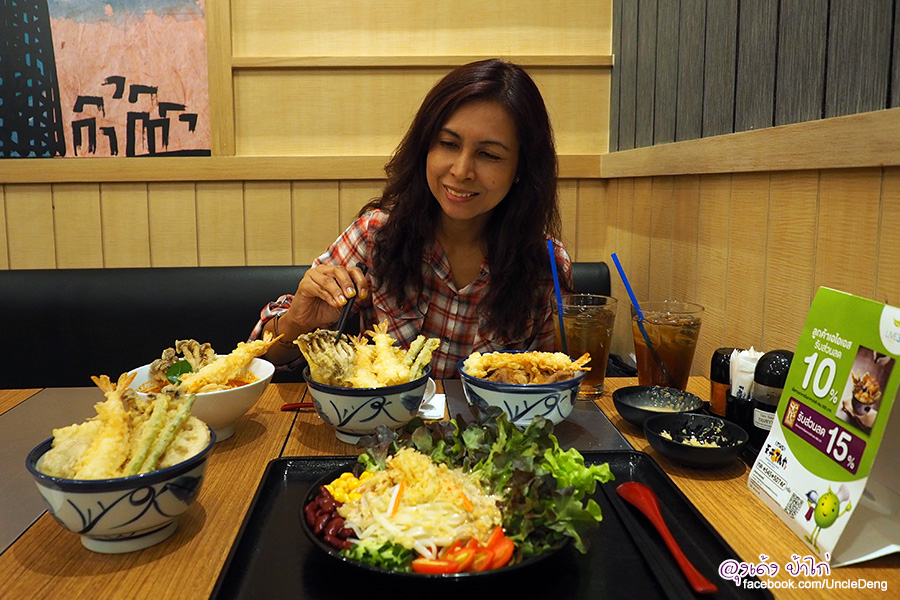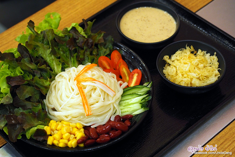 สลัดอุด้ง (Udon Salad) เมนูสุขภาพพระเอกของจานนีคือเส้นอุด้ง เหนียวนุ่ม เสิร์ฟพร้อมผักสดเรดโอ๊ค กรีนโอ๊ค ข้าวโพดหวาน ถั่วแดง แตงกวา มะเขือเทศราชินี และปูอัด ราดด้วยน้ำสลัดงาขาวสูตรญี่ปุ่น หรือ น้ำสลัดสไปซี่ โดยหน้าด้วยแป้งเทมปุระกรุบกรอบ ชุดนี้ราคา 99 บาทเท่านั้น