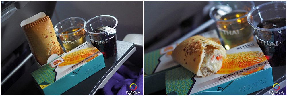 ขากลับ ก่อนเครื่องลงจอดที่สุวรรณภูมิ ก็มีแจก Hot Sandwich Creamy Mushroom & Cheese
