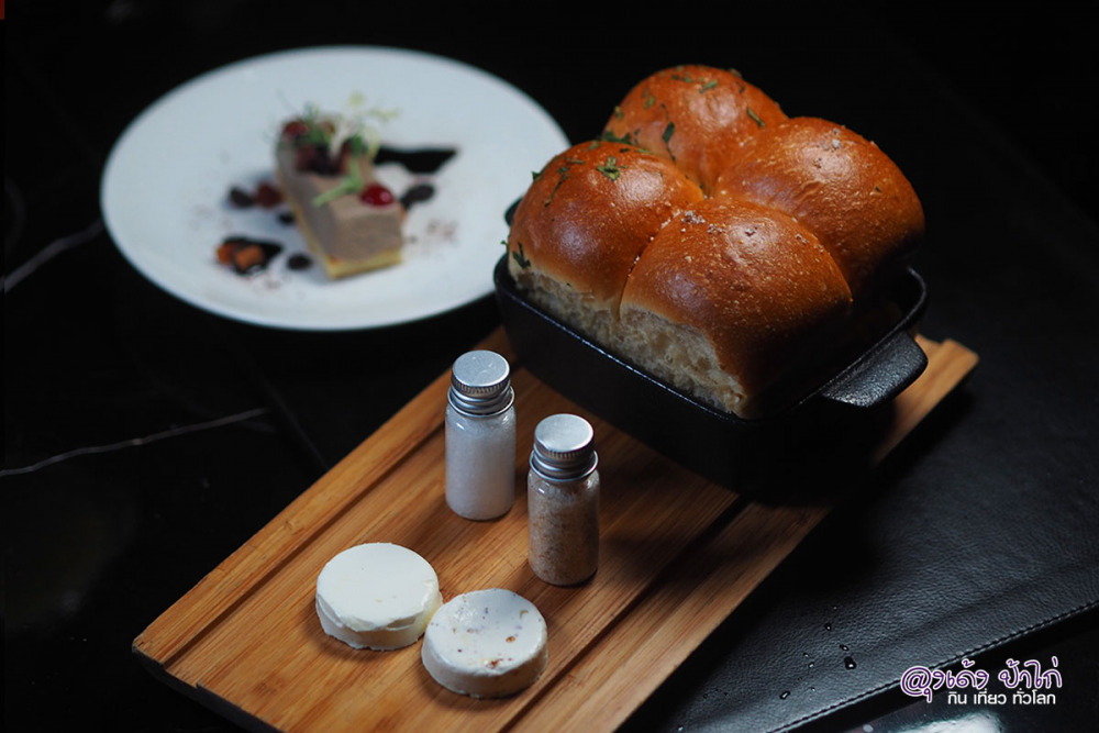 เปิดมื้อด้วย... ขนมปังอุ่นๆ เสิร์ฟพร้อมกับ Sea Salt & Yuzu Salt || เนยสด และ เนยผลไม้