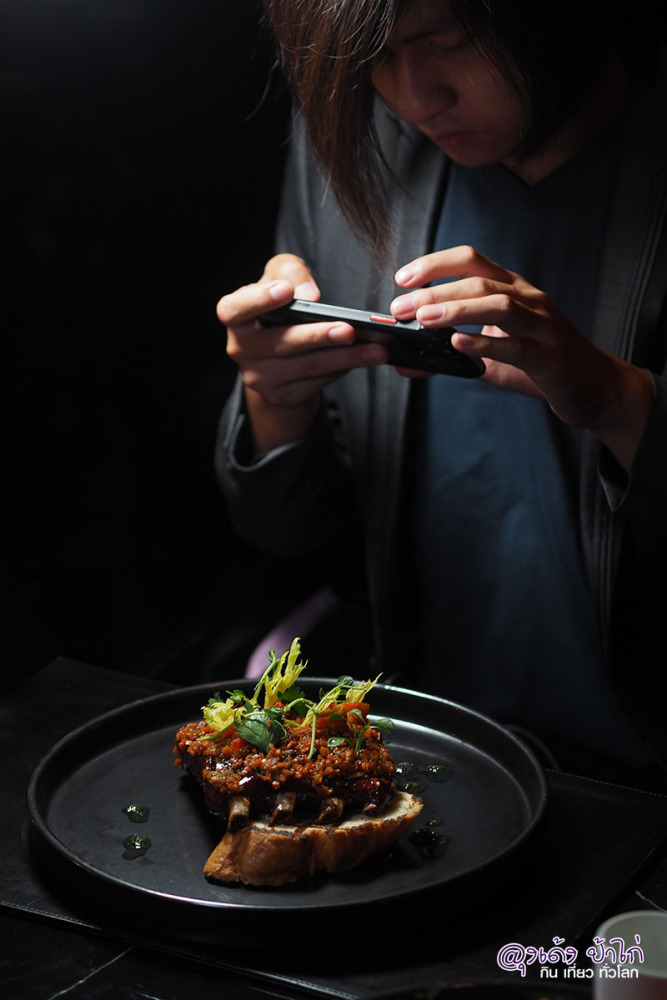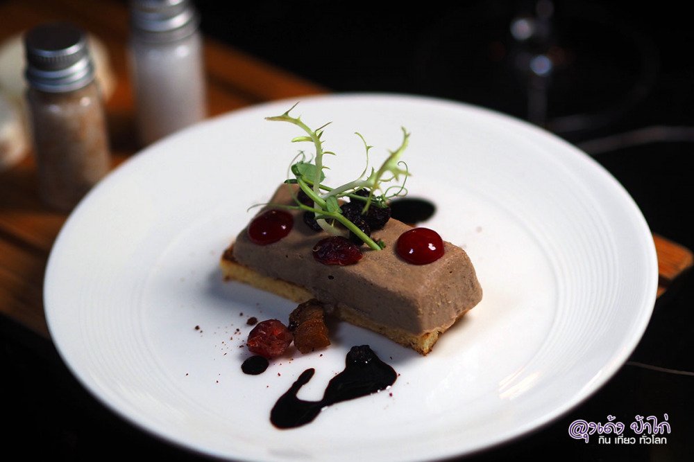 ตามด้วย Amuse-bouche มื้อนี้ : ตับไก่บด วางบน Brioche Bread