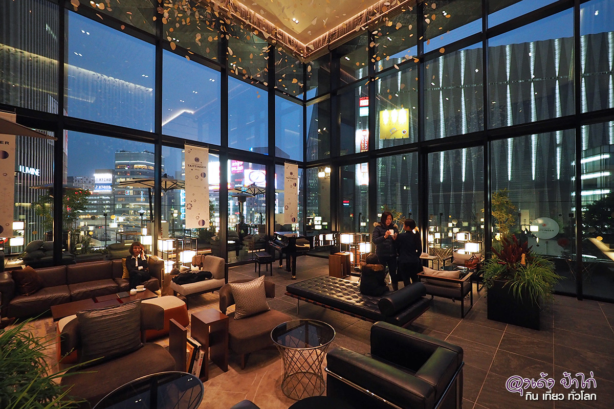 Lobby ของโรงแรมตั้งอยู่ชั้น 4 โดดเด่นด้วย ผนังกระจกใส ช่วงค่ำ สวยมาก เพราะอาคารในละแวกนี้เปิดไฟกันสว่างไสว ด้านนอกเป็นระเบียงชมวิว ออกไปถ่ายรูปก็สวยเช่นกัน