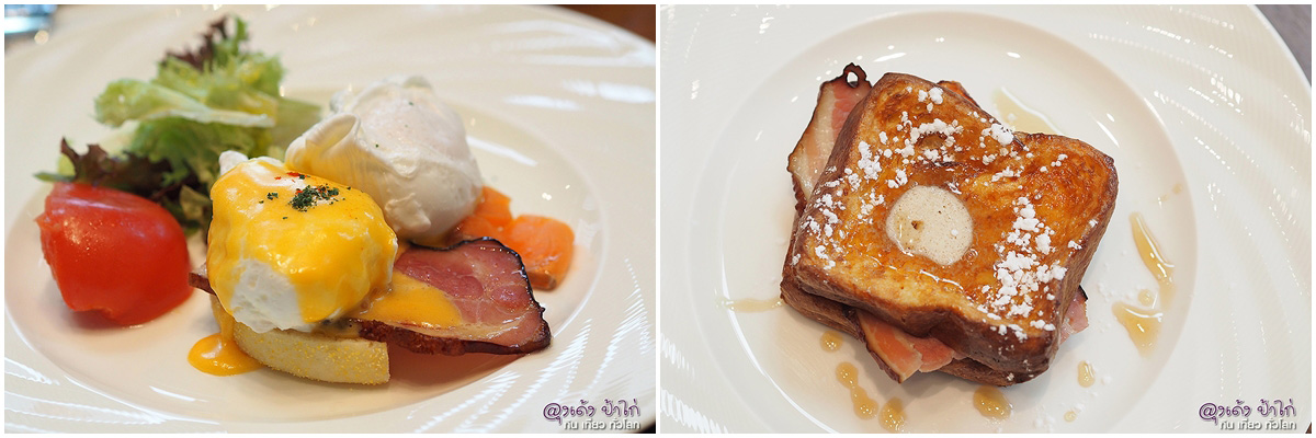 Eggs Benedict อร่อยตามมาตรฐาน | French Toast ขนมปังสุดยอด ย่างไฟได้กรอบนอกนุ่มใน และ เบคอนญี่ปุ่น ที่เสิร์ฟมาทั้ง 2 จานสุดยอดมากๆ