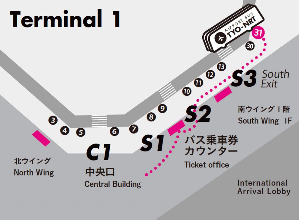 ขากลับจากโรงแรม -> สนามบินนาริตะ เดินตามลูกศร มาขึ้นรถที่จุดเดิม ค่าโดยสาร 1000 เยน