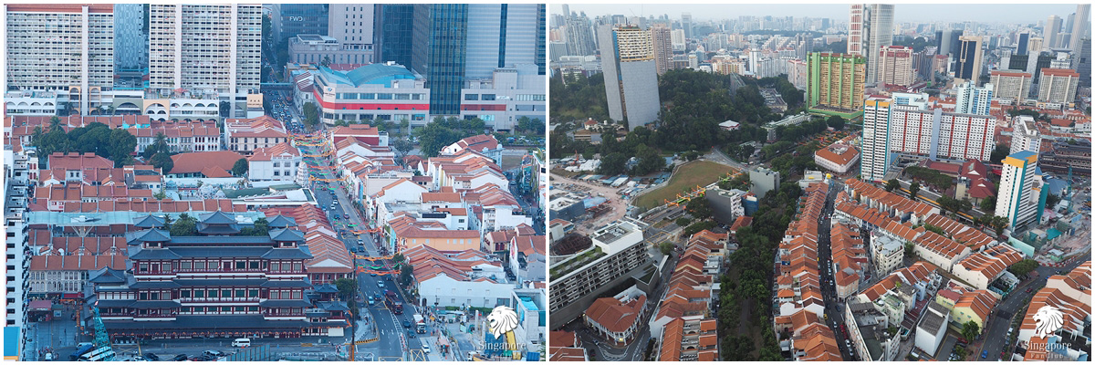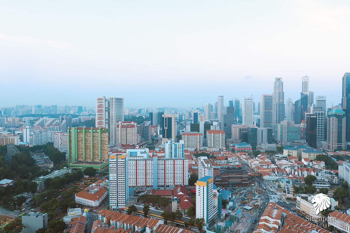 ช่วงเย็น ก็จะได้อีก 1 บรรยากาศ ... จุดนี้ เรามองเห็น ไชน่าทาวน์ สิงคโปร์ ได้อย่างเต็มตา ทั้ง วัดเขี้ยวแก้ว ศูนย์อาหาร Maxwell Food Centre ที่ตั้งของข้าวมันไก่ เทียน เทียน