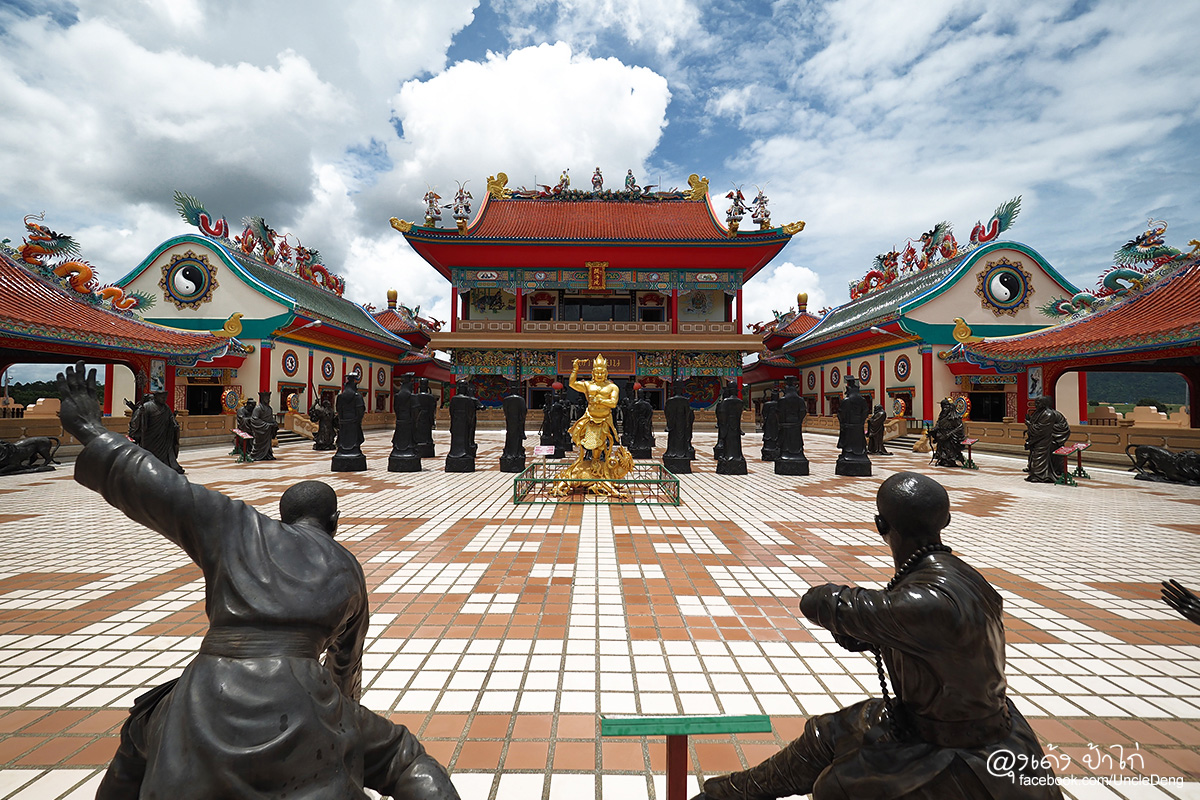 อาคารสามชั้นตรงกลางคือวิหารเซียน ด้านบนคือจุดชมวิว และมีรูปหล่อสำริด วางให้ชมอีกมากมาย