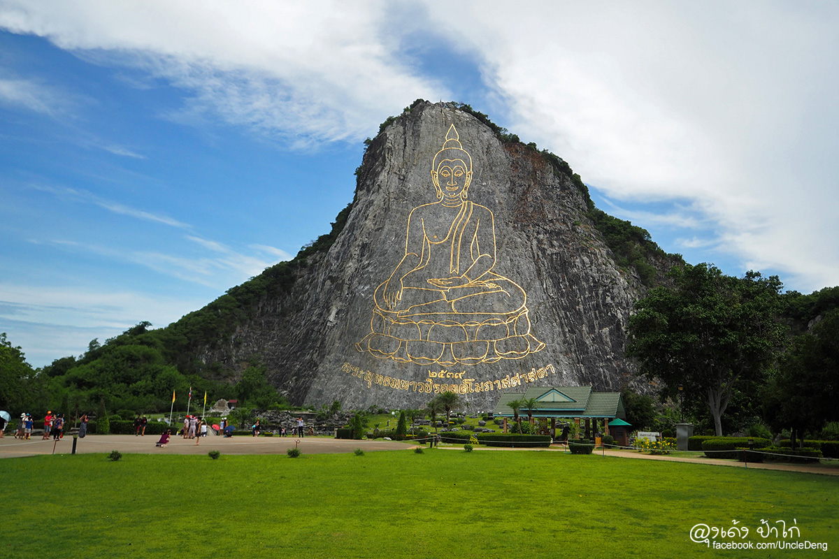 พระพุทธรูปมีขนาดความสูงรวมฐานบัวถึงบัลลังค์ 130 เมตร หน้าตักกว้าง 70 เมตร แกะสลักด้วยเลเซอร์บนหน้าผาสูงเด่นตระหง่านเป็นที่สะดุดตาแก่ผู้มาเยือน ถูกสร้างขึ้นเพื่อถวายเป็นพระราชกุศลแด่พระบาทสมเด็จพระเจ้าอยู่หัว ในวันที่ 9 มิถุนายน 2539 แล้วเสร็จ ในปี 2543 เนื่องในวโรกาสทรงครองสิริราชสมบัติครบรอบ 50 ปี และทรงพระราชทานนามว่า “พระพุทธมหาวชิรอุตตโมภาสศาสดา” ซึ่งมีความหมายว่า “พระพุทธเจ้าทรงเป็นศาสดาที่รุ่งเรืองสว่างประเสริฐ ดุจดังมหาวชิระ”
