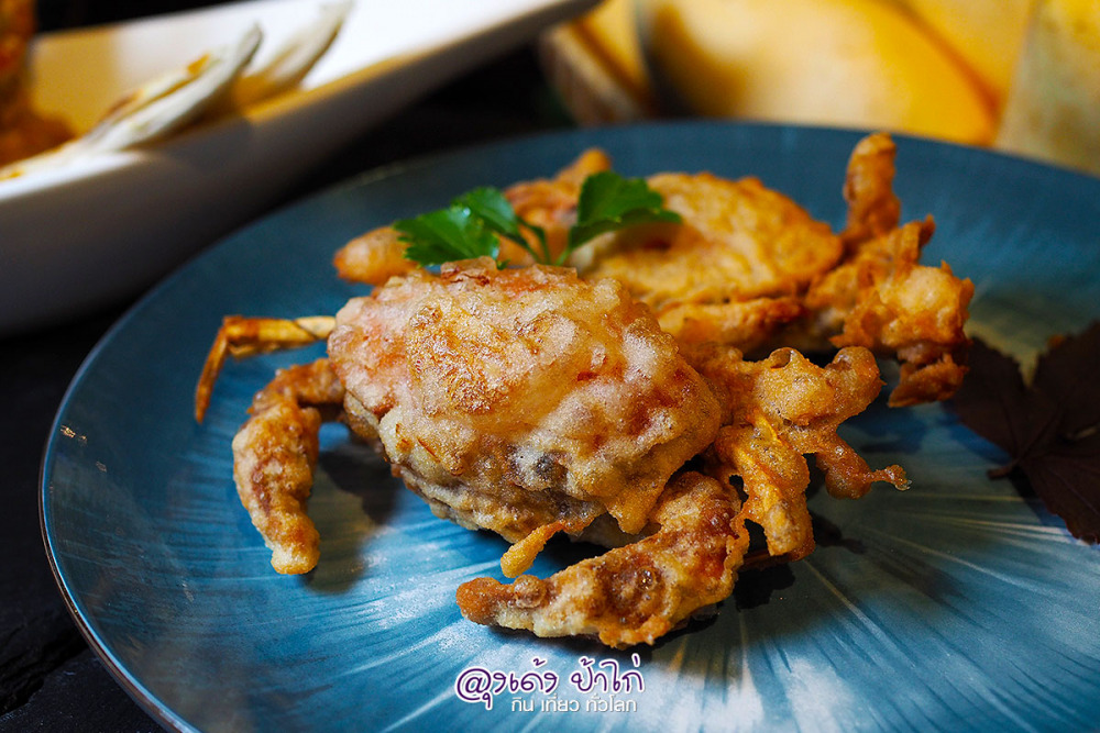 ปูนิ่มทอด อันนี้ ลุงเด้งป้าไก่ สั่งแบบ ไม่ใส่ สลัดซัลซ่ามะม่วง แต่เอามากินกับน้ำจิ้มซีฟู้ด อร่อยเลิศเลย