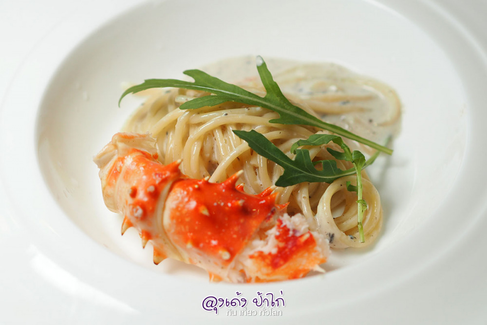 มื้อนี้ เสิร์ฟ พาสต้าทรัฟเฟิลซอส ขาปูยักษ์ เสิร์ฟมาสวยๆ ในจานก็ประมาณ 3 คำหมด ซึ่งดีมาก ทำให้เรากินอาหารอย่างอื่นๆ ได้ ไม่ใช่แบบจานเดียวจุก 555