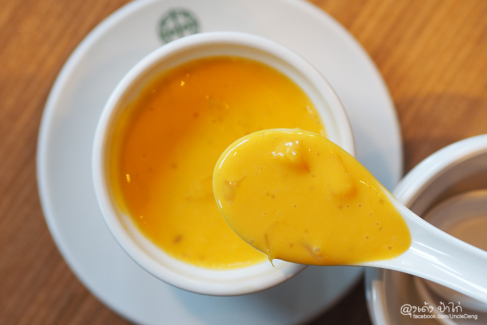 สาคู มะม่วง ส้มโอ (Mango Sago Pomelo) ราคา 90.- เมนูหอมหวานชื่นใจ ส่วนผสมหลักคือมะม่วงสดนำไปปั่นจนเนื้อเนียน ใส่สาคู เนื้อมะม่วงชิ้น และเกล็ดส้มโอ เสิร์ฟเย็นๆ คำแรกก็สดชื่น หายเหนื่อย เป็นที่นิยมมากในฮ่องกง และสิงคโปร์