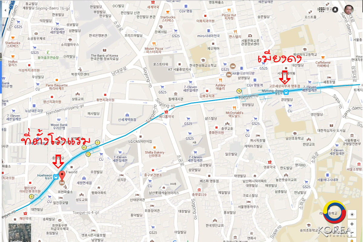 การเดินทาง : สถานี Hoehyeon Station exit 3 (โรงแรมติดกับสถานี สะดวกมาก)