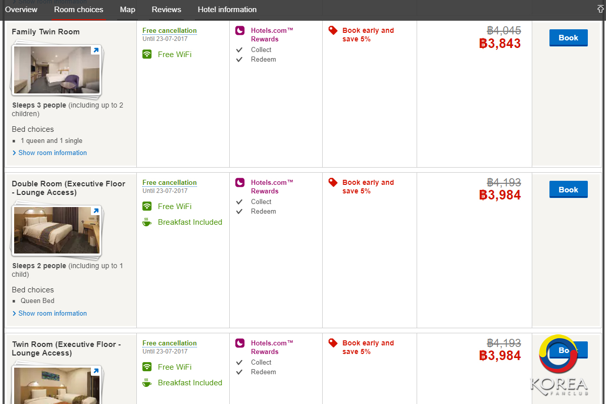 เข้าพัก 3 คน + เด็กไม่เกิน 7 ขวบ 2 คน (ไม่เสริมเตียง) ราคาประมาณ 4,100 บาท