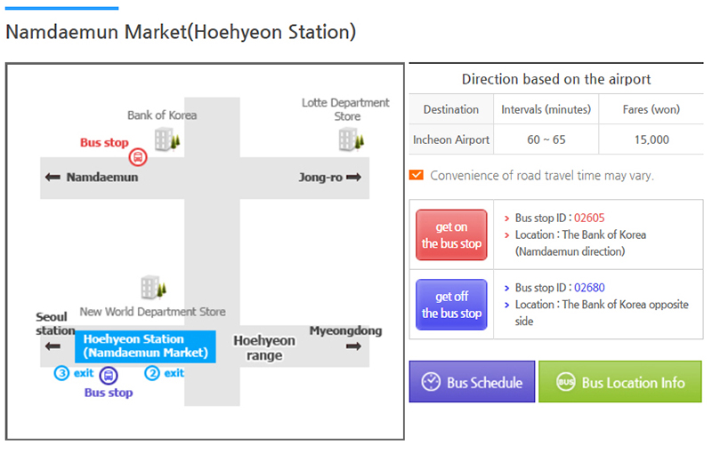 ข้อมูลการเดินรถ http://www.airportlimousine.co.kr/eng/lbr/all/lbr02_1_6001.php#6001_01