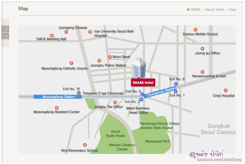 ลงหน้าป้าย Myeong-dong Station เดินต่ออีก 10 นาที ถึงหน้าโรงแรม