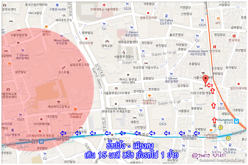 หรือนั่งรถไฟใต้ดินจากสถานี Chungmuro -> สถานี Myeongdond (1 ป้ายเท่านั้น)