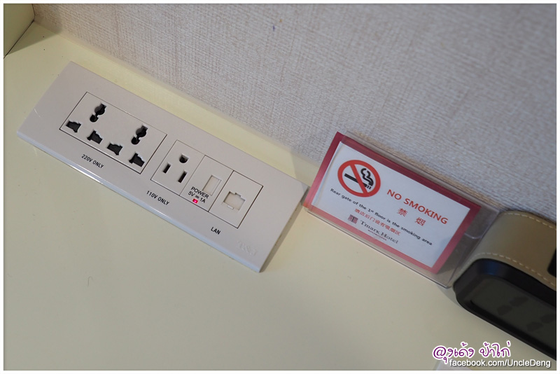 ป้ายชื่อโรงแรมอยู่ด้านบนตึก แต่ก็มองยาก ถ้าหาไม่เจอ ให้ดูที่ป้ายนี้ วางอยู่ที่ริมทางเดินก่อนเข้าโรงแรม