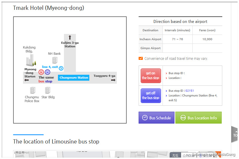 Airport Limousine Bus สาย 6015 จอดที่ป้าย Tmark Hotel (Myeong-dong)