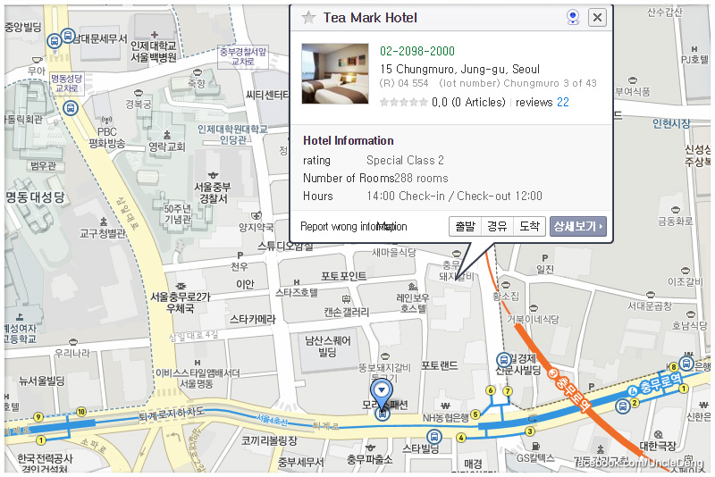 5. รถไฟใต้สถานี Chungmuro ทางออก 6 เดินเพียง 3 นาทีถึงหน้าโรงแรม