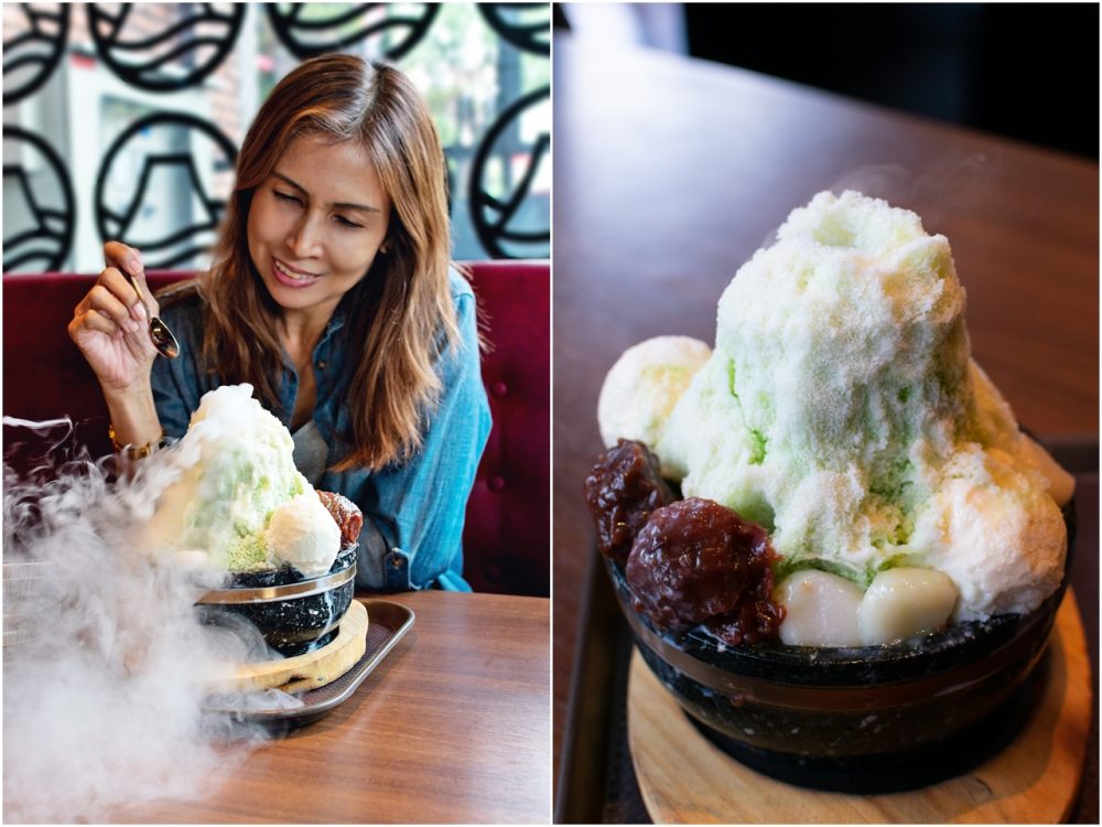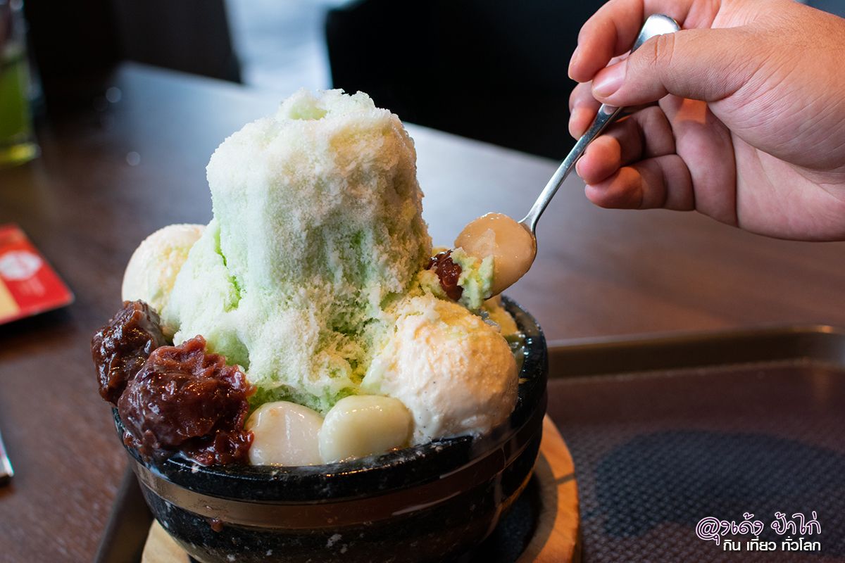 ตบท้ายด้วยของหวานที่เล่นใหญ่มาก ไอศกรีมคาซังรสชาเขียว 190 บาท เป็นเหมือนบิงซู คากิโกริรสชาเขียว ตอนเสิร์ฟ พนักงานจะเติมน้ำเข้าไปในตัวภูเขาไฟ จากนั้นควันก็พุ่งขึ้นมา (เตรียมกล้องเอาไว้ให้ทันหละ) น้ำแข็งใสรสชาเขียวถ้วยใหญ่ ท๊อปปิ้งด้วยถั่วแดงบดเนื้อนุ่ม โมจิเหนียวนุ่ม เคี้ยวอร่อย กินเพลินๆ ถือเป็นเมนูของหวานล้างปากที่ห้ามพลาดเลย