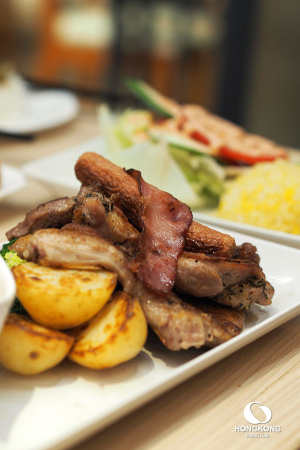 6. สเต็กรวม Mixed Grill (Beef Steak, Chicken, Pork Chop, Bacon & Sausage) w/ Red Wine Grav ราคา HK$ 105 เหรียญ