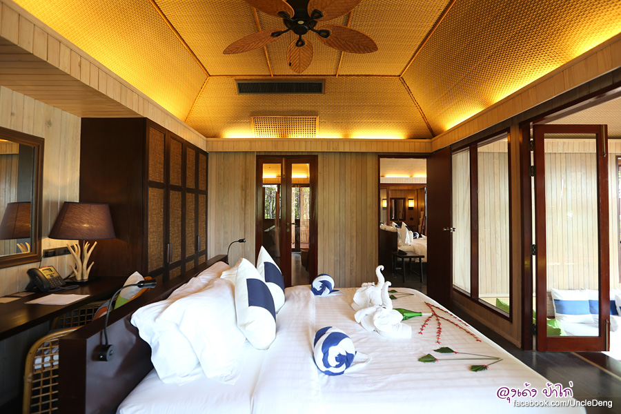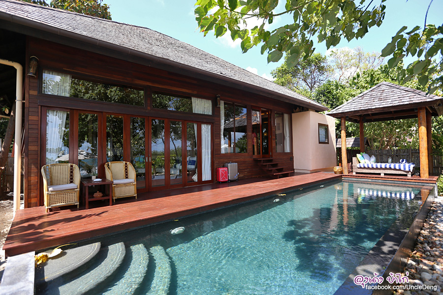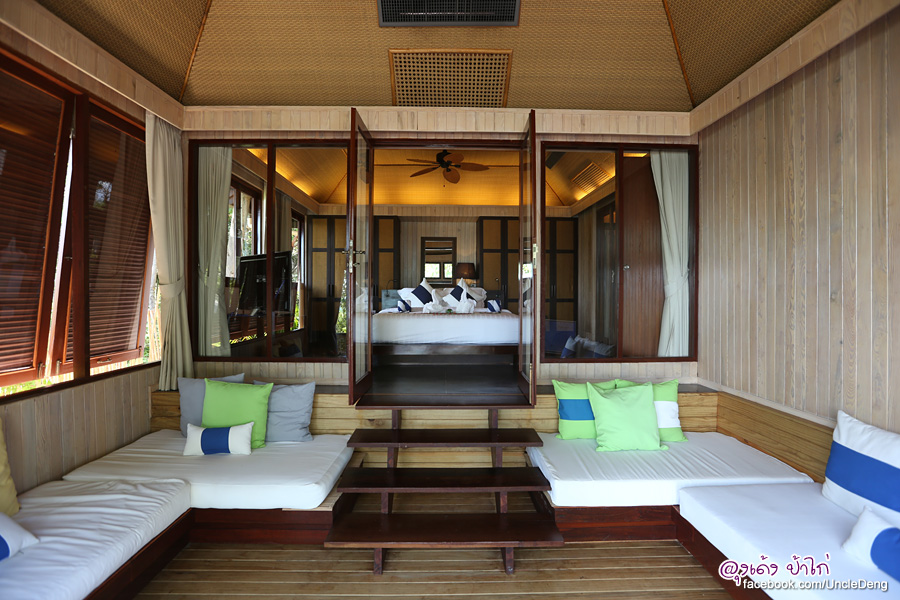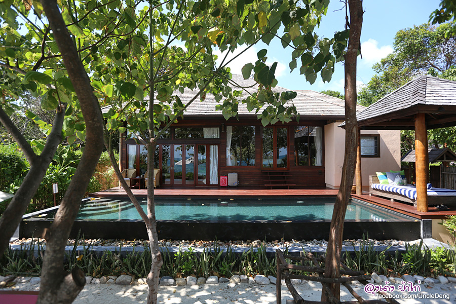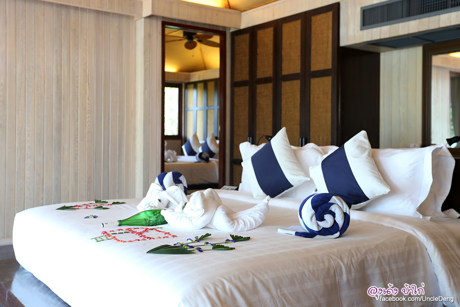 ทริปนี้ ลุงเด้ง ป้าไก่ พักห้อง 2-Bedroom Beachfront Pool Villa (163 sqm) เป็นห้องที่ใหญ่ที่สุด และมีเพียง 1 ห้องเท่านั้น ห้องชุดนี้ประกอบด้วย 2 ห้องนอน + 1 ห้องนั่งเล่น + สระว่ายน้ำส่วนตัว และเป็นห้องที่อยู่ที่ทะเล ชาดหาดด้านหลังของเกาะ ใกล้กับห้องอาหาร ในบรรยากาศที่ใกล้ชิดธรรมชาติ