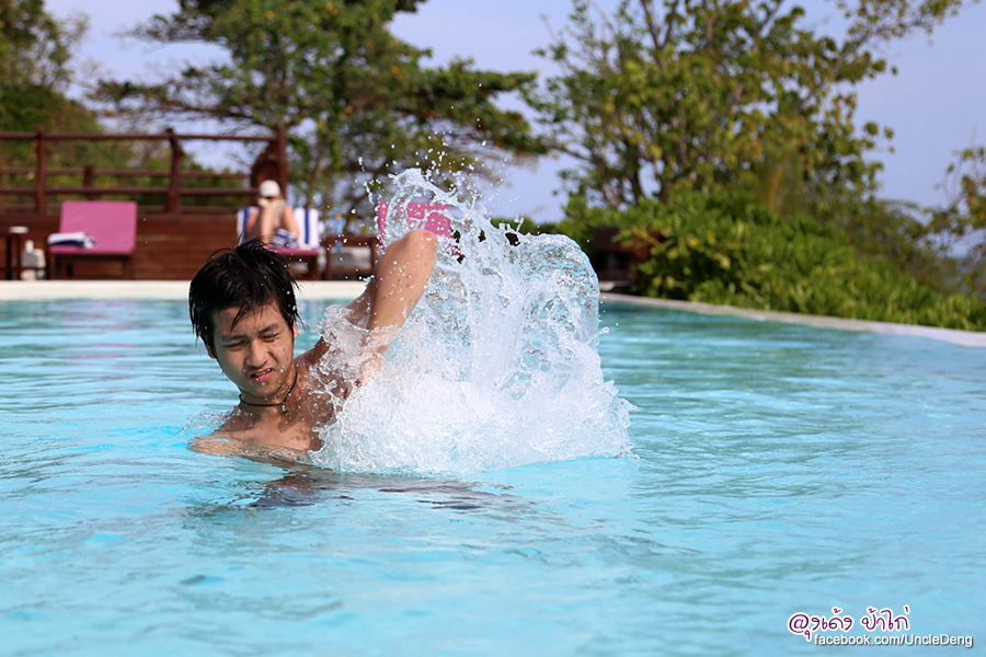 เพื่อนๆ ที่ไม่ได้พักที่ Pool Villa ก็มาใช้สระว่านน้ำส่วนกลางได้ที่หน้าห้องอาหาร