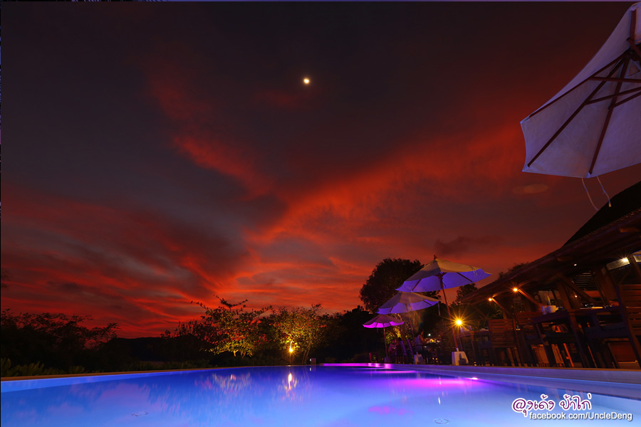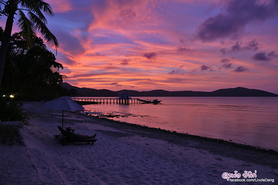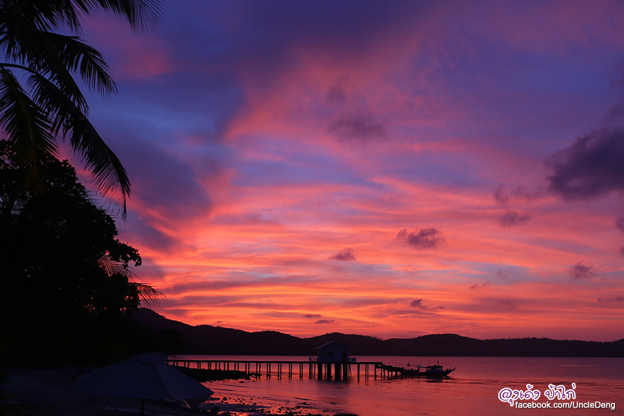 ช่วงที่ลุงเด้ง ป้าไก่ ไปพักมีโอกาสได้มามานั่งชมพระอาทิตย์ตกดินที่สวยงามมากๆ วิวนี้อยู่ด้านหน้าเกาะ พระอาทิตย์ตกทางซ้ายมือ โชคดีมาก ที่ท้องฟ้าวันนี้มีเส้นสาย และแสงสีที่สวยงาม