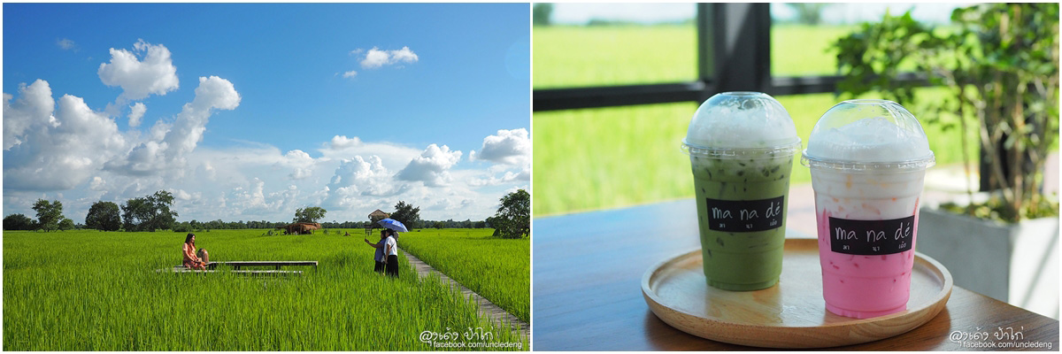 วัดพระธาตุหนองบัว ขับรถประมาณ 30 นาที ก็มาถึง มา นา เด้อ คาเฟ่ กลางทุ่งนา สุดฮิต ของเมืองอุบลราชธานี