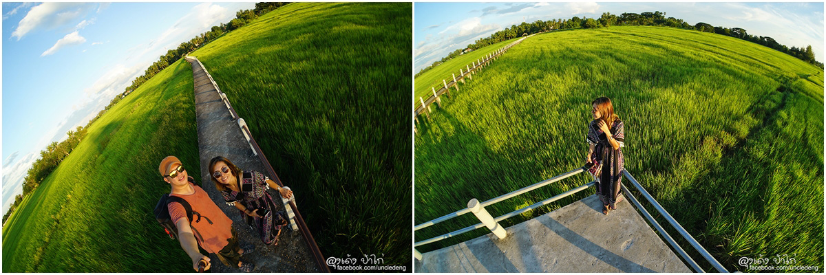 ลุงเด้งป้าไก่ สอบถามจากชาวบ้านแถวนี้ ถ้ามาช่วงเดือนพฤศจิกายน ทุ่งนานี้จะเป็นสีเหลืองทอง ข้าวออกรวง เป็นช่วงฤดูเก็บเกี่ยว