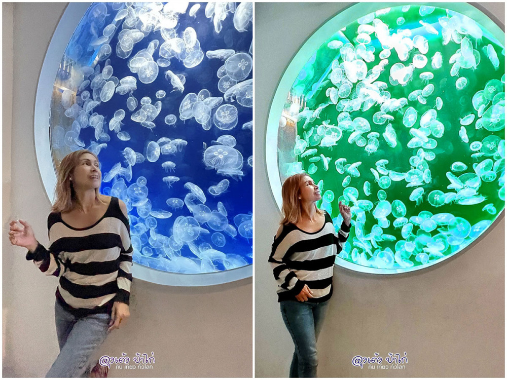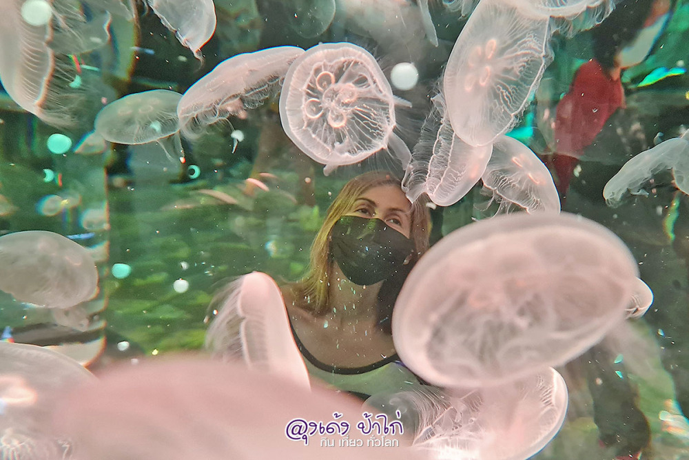 จุดแสดงแมงกะพรุน นานาชนิด โซนนี้ จะมีการเล่นแสงไฟ และกระจกสะท้อน ได้มุมถ่ายรูปสวยๆ เยอะมาก