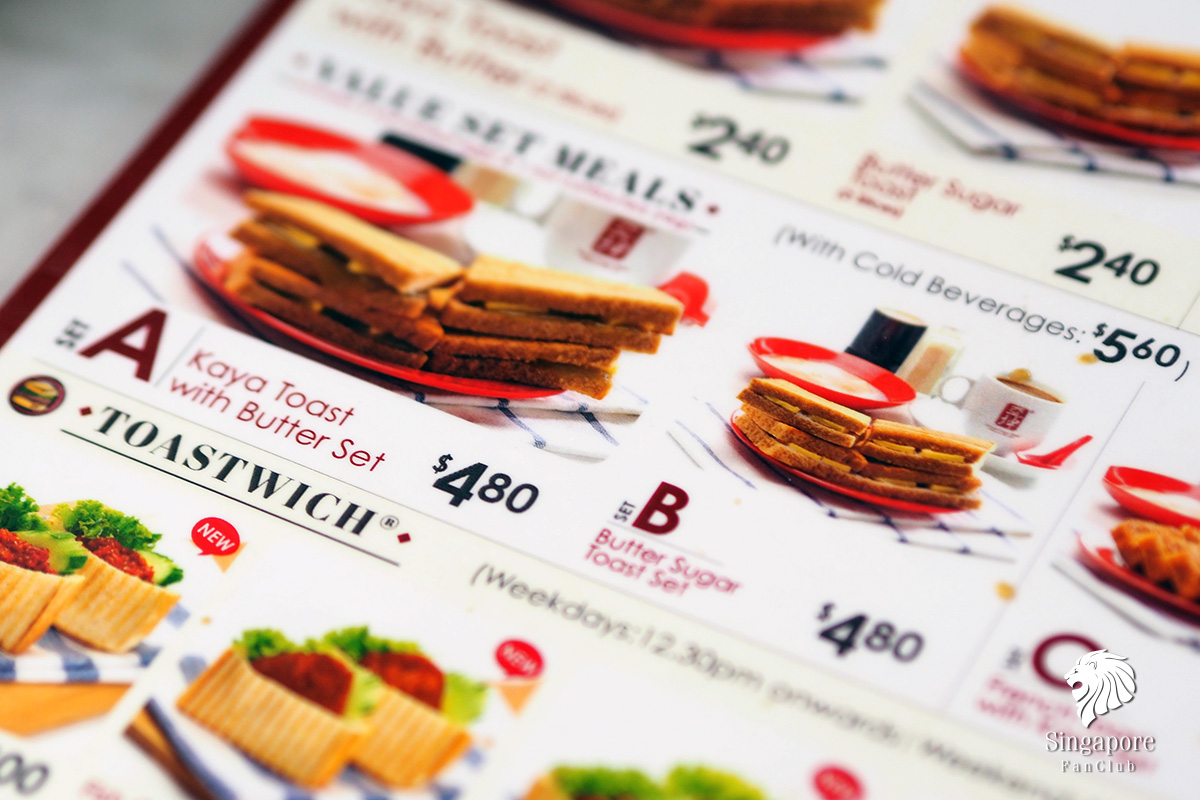Kaya Toast เรียกกันว่า เป็นอาหารเช้าของ คนจีน ในสิงคโปร์ ว่ากันว่า ต้นกำเนิดมาจากคน ไหหลำ ที่อพยพ ข้ามน้ำข้ามทะเล มาตั้งรกรากในสิงคโปร์ - คนไหหลำ มีความสามารถในการ ทำอาหาร ชงกาแฟ - ในภาพ คือ Value Set Meals : Set A ราคา $ 4.80 เหรียญ ชุดที่ขายดีที่สุด ประกอบด้วย Kaya Toast with Butter 2 ชิ้น + ไข่ลวก 2 ฟอง + ชานม หรือ กาแฟ ร้อน 1 ถ้วย ชุดนี้มีขายตลอดวัน คนสิงคโปร์ กินเมนูนี้ทั้งวันครับ