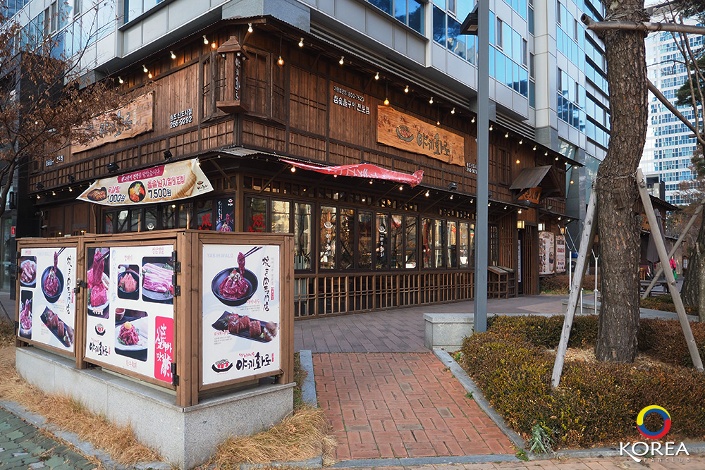 Yaki Hwalo ตั้งอยู่หัวมุมถนน Convensia-daero ตัดกับ Concensia-daero 130beon-gill ถ้าเรามาจากร้าน An’s Bakery เดินมาเรื่อยๆ จะผ่าน DAL.KOMM COFFEE ข้ามถนนมาก็เจอเลย Yaki Hwalo ร้านเนื้อย่างสังเกตง่าย เป็นอาคาร 2 ชั้น ภายนอกประดับด้วยไม้สีน้ำตาล พร้อมป้ายรูปอาหาร ยังไงก็ไม่พลาดแน่นอน