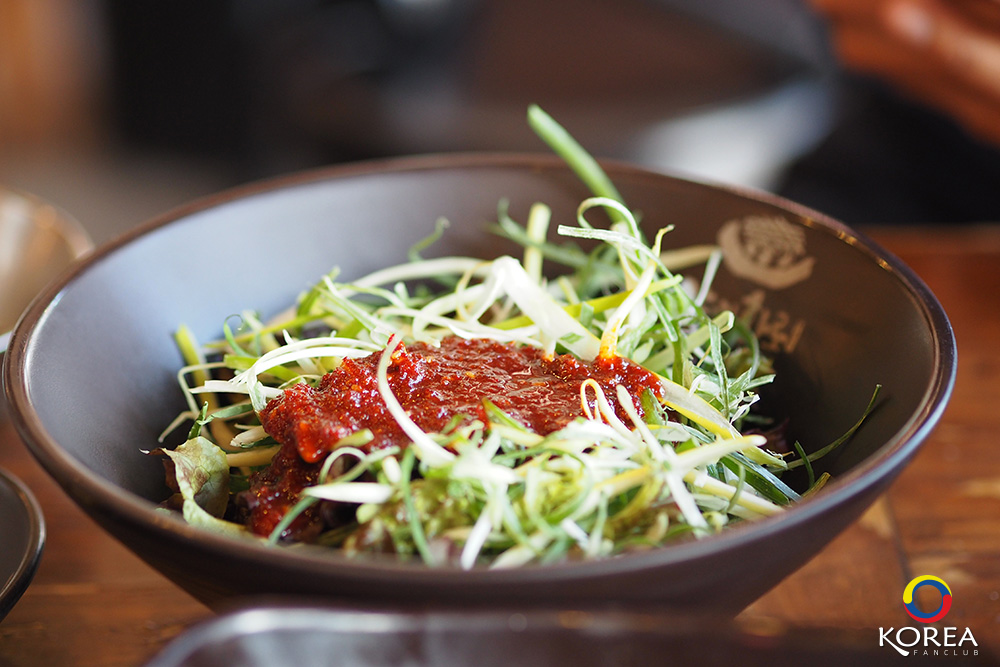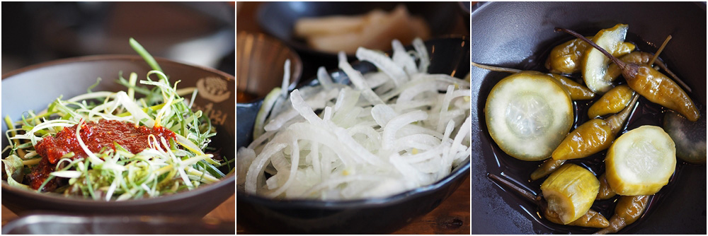 เนื้อย่างชิ้นสวยขนาด 120 กรัม … คิดในใจมาตลอดเวลากินเนื้อเกาหลีแล้วเสิร์ฟแบบ 120 กรัม มันจะพอมั๊ย??? จริงๆ แล้วก็อิ่ม เพราะในชุดมี 물냉면 (มุลแนงมยอน) หรือบะหมี่เย็นแบบน้ำ จัดมาให้ด้วย แต่…ถ้าถามว่าได้กินเนื้อแบบสะใจมั๊ย ตอบเลยว่า ไม่สะใจเลยอ่ะ … ก็สั่งเพิ่มได้นิ 555
