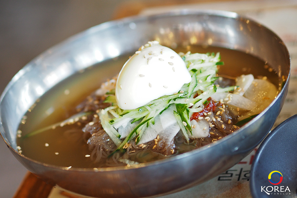 ชุดเนื้อย่าง + 물냉면 (มุลแนงมยอน) หรือบะหมี่เย็นแบบน้ำ ชุดนี้ราคา 13,000 วอน