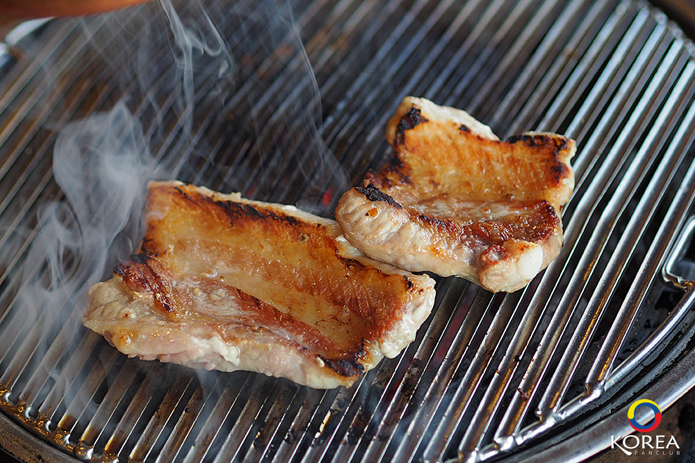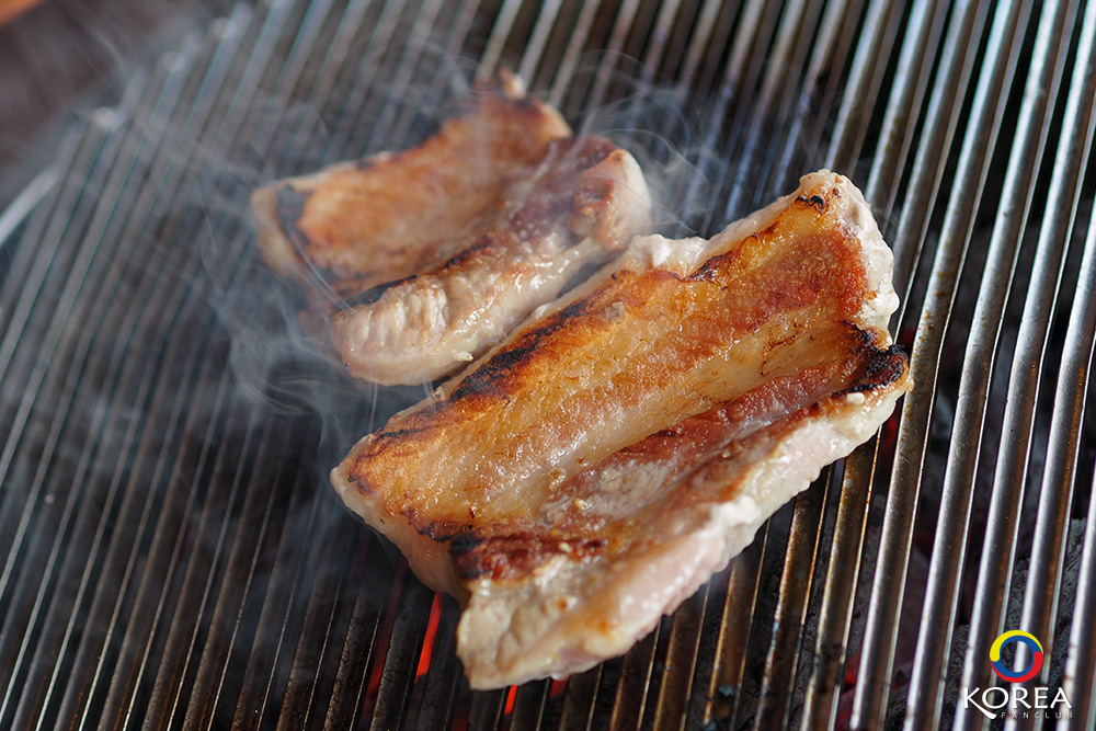 เมนุสุดท้ายหมูสามชั้นย่าง … คุณภาพของเนื้อหมูเกาหลี ดีกว่าเนื้อหมูบ้านเราเยอะเลย หมูสามชั้นย่างแบบนี้ไม่ต้องหมักอะไรเลย มีโดยเกลือมานิดๆ หน่อยๆ