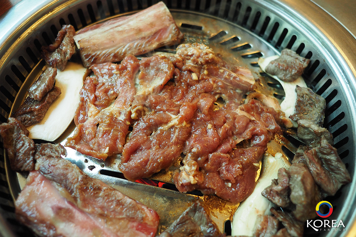 Grilled Spareribs หมูหมัก ชุดนี้ 16,000 วอน (ตรงกลางเป็นหมู - รอบนอกเป็นเนื้อวัว)