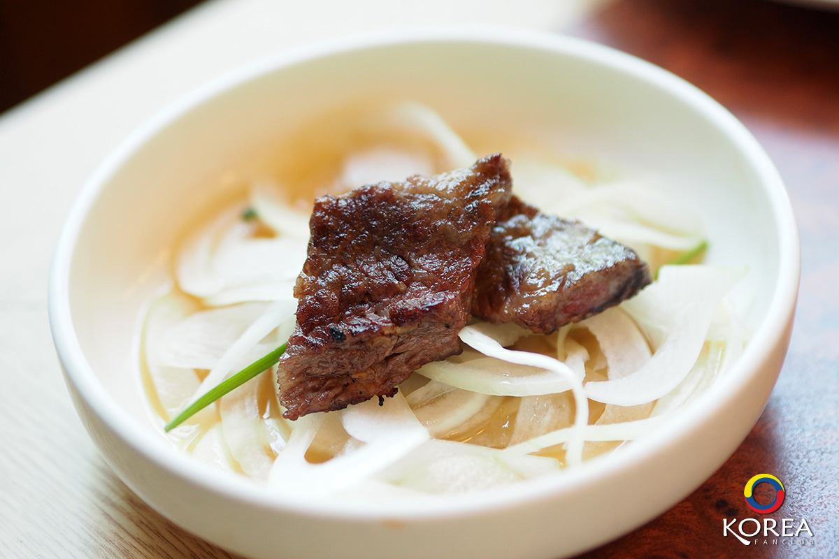 เนื้อย่างเกาหลี จะกินกับ หัวหอมซอย กับซอส ที่ทางร้านจัดมาให้ อร่อยที่สุด