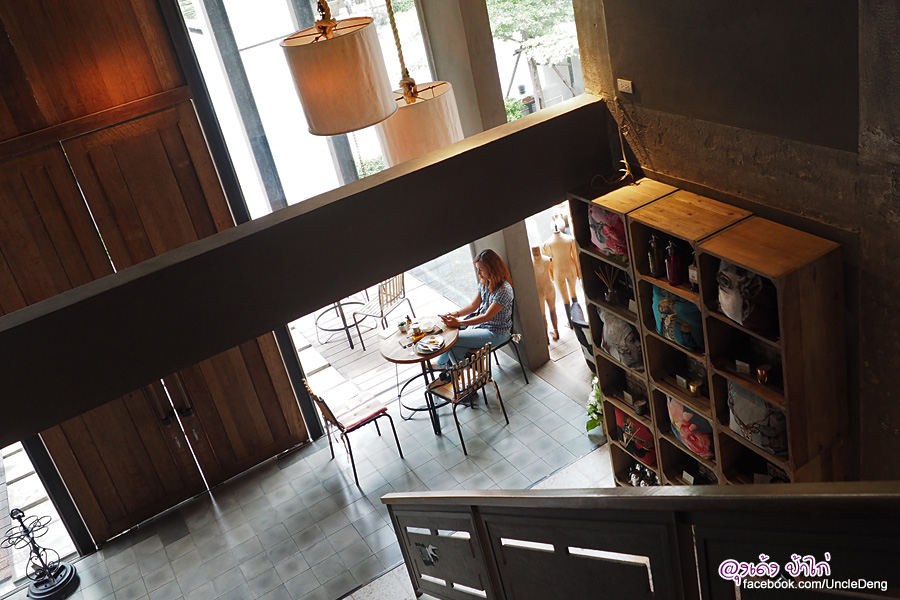 ด้านในสุดของร้านเป็นเคาน์เตอร์ปูนสไตล์อินดัสเทรียล วางเครื่องชงกาแฟอย่างดี ชั้นวางของและเฟอร์นิเจอร์เป็นไม้เนื้อด้าน เพื่อลดความแข็งของปูนเปลือย...