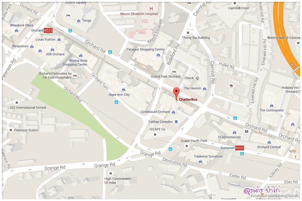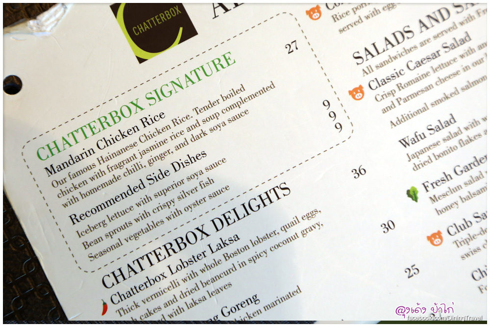 Chatter Box ร้านอาหารที่เปิดมาตั้งแต่ปี ค.ศ. 1971 ตั้งอยู่ชั้น 5 ของโรงแรม Mandarin Orchard เมนูยอดนิยม และขายดีตลอดกาลคือ ข้าวมันไก่...