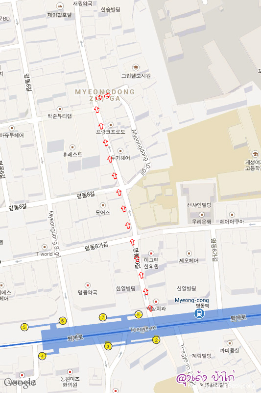 การเดินทางจาก สนามบินอินชอน Airport Limousine Bus สาย 6015 ใช้เวลาเดินทาง 45 นาที ลงหน้าป้าย Myeong-dong Station...